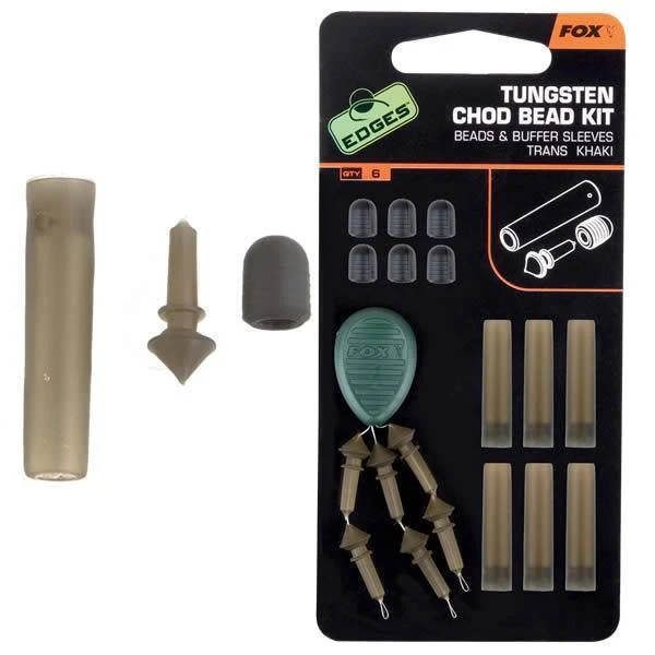 Tungsten Chod Bead Kits zijn uitgevoerd in een halfdoorzichtige khaki kleur die wegvalt tegen de bodem, ook zijn ze verzwaard om de rig goed te verbergen. Ze zijn ontworpen voor gebruik direct op de hoofdlijn, zonder leader. Tijdens de dril zal de kraal naar beneden schuiven, tegen de buffer sleeve. De buffer sleeves hebben ook een gegoten uitsparing om de rig met een drop off loodsysteem te vissen.